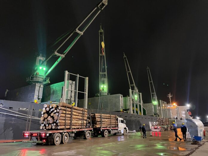 Con el mal tiempo como marco durante todo este martes, el puerto de Concepción del Uruguay continúa recibiendo buques para exportar madera. A primera hora de este 2 de septiembre, amarró el buque Daiwan Leader en los muelles 14, 15, y 16, y sobre el mediodía, la empresa Urcel Argentina comenzó a cargar las bodegas del carguero con troncos de pino.