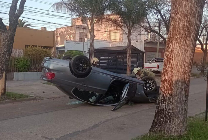 El rodado circulaba por calle Frías en sentido este-oeste cuando, por causas que se investigan, colisionó contra un árbol, provocando el vuelco del mismo quedando con sus cuatro ejes hacia arriba.