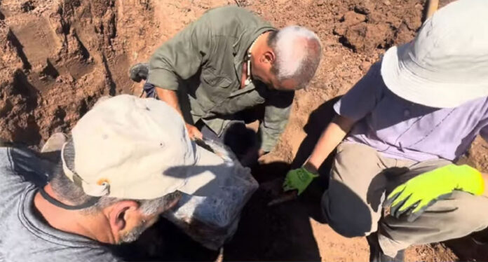 Rescatan restos fósiles de un gliptodonte en un operativo paleontológico