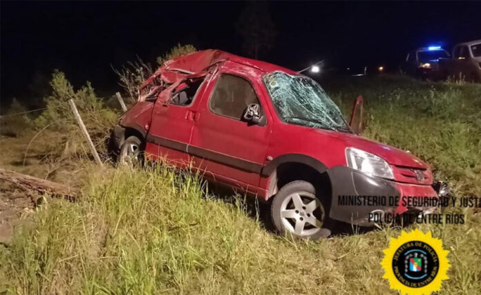 Personal policial de Comisaría Liebig, dependiente de Jefatura Departamental Colón, intervino por un accidente de tránsito ocurrido en inmediaciones de la Ruta Provincial N° 130, al kilómetro 3, donde por causas que se tratan de establecer, un automóvil marca Peugeot, modelo Partner, el cual se desplazaba en sentido Oeste a Este, perdió el control, despistó y volcó.