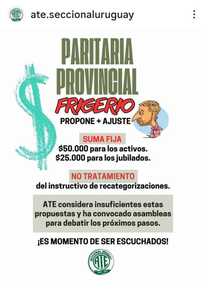 ATE se planta ante los aumentos anunciados por el Gobierno a los estatales octubre 20, 2025 FacebookWhatsAppTwitter