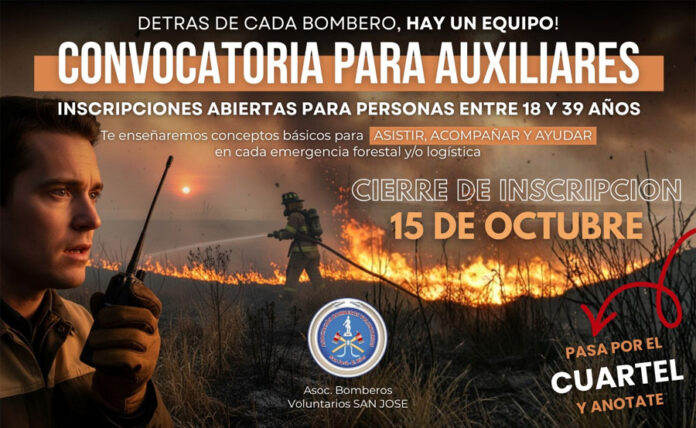 π—¦π˜‚π—Ίaπ˜π—² 𝗰𝗼𝗺𝗼 π—”π—¨π—«π—œπ—Ÿπ—œπ—”π—₯ π——π—˜ π—•π—’π— π—•π—˜π—₯𝗒𝗦 π—©π—’π—Ÿπ—¨π—‘π—§π—”π—₯π—œπ—’π—¦ π—˜π—‘ 𝗙𝗒π—₯π—˜π—¦π—§π—”π—Ÿπ—˜π—¦ 𝗬 π—Ÿπ—’π—šπ—œπ—¦π—§π—œπ—–π—”Inscripciones abiertas, si tenes entre 18 y 39 aΓ±os pasΓ‘ por el CUARTEL DE BOMBEROS SAN JOSE y anotate al curso