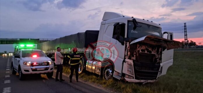 Siendo las 18:55 horas de este miércoles, personal de Bomberos Voluntarios fue alertado por un vecino que circulaba por la Autovía Nacional Artigas, a la altura del kilómetro 135 aproximadamente, sobre el despiste de un camión con su conductor en el interior.