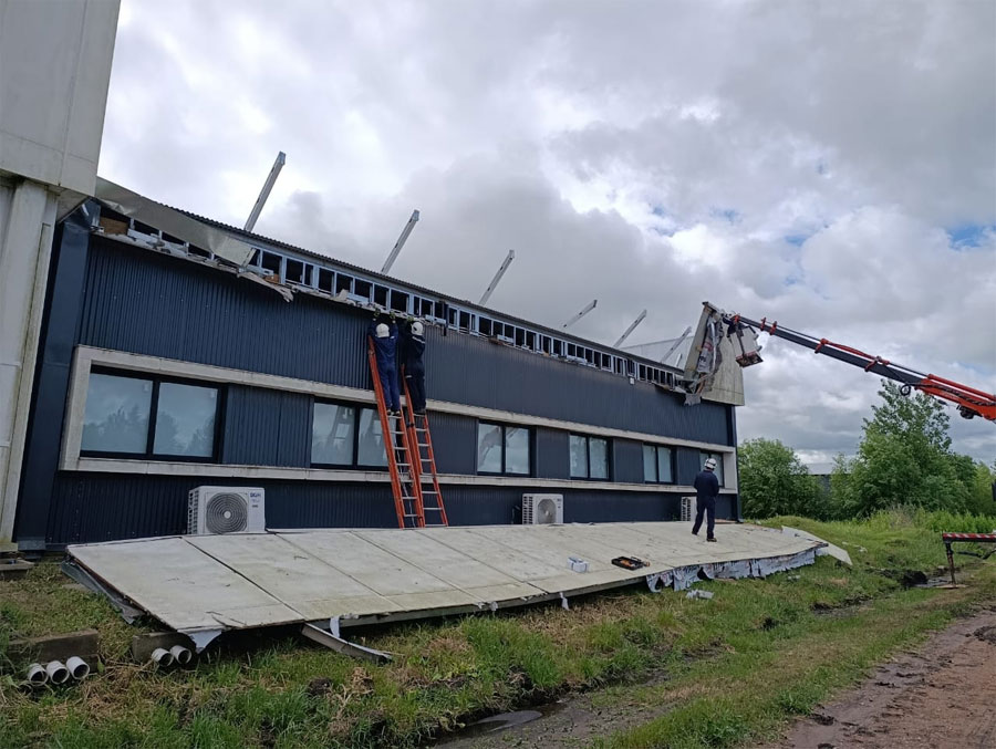 Según informaron desde la institución, la tormenta ocasionó la caída de parte de la estructura trasera del edificio. “Afortunadamente, no se registraron personas lesionadas. Cayó parte del lateral trasero, pero por suerte no voló el techo. Desde la F.E.A.B.V. ya estamos avanzando con las tareas de reparación correspondientes”, señaló el presidente Ariel Molina.
