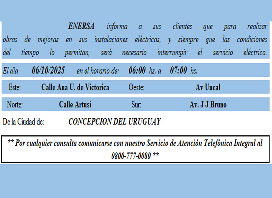 ENERSA anuncia corte