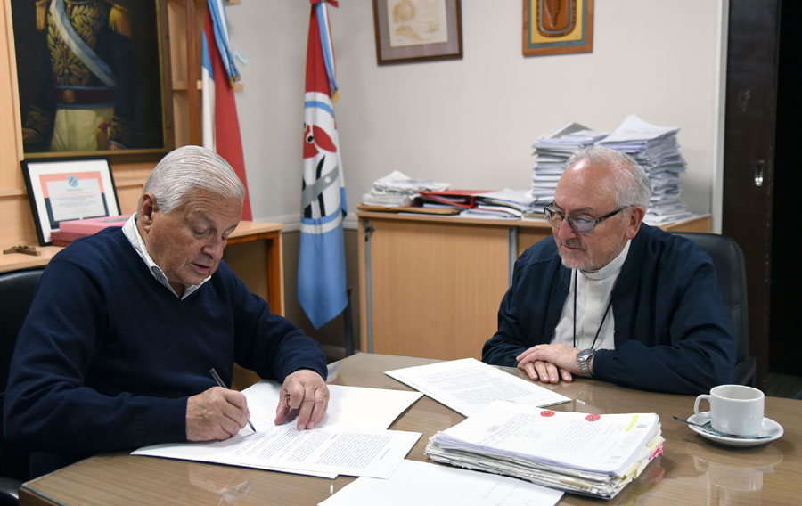 El acuerdo fue rubricado por el intendente, José Lauritto; y el titular del Obispado, Monseñor Héctor Zordán, quienes estuvieron acompañados por el concejal Juan Martín Garay.