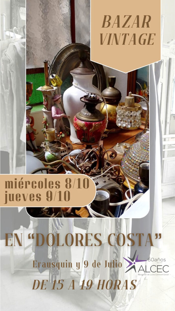 Miércoles y jueves Bazar Vintage octubre 7, 2025 FacebookWhatsAppTwitter Organizado por ALCEC, este miércoles 8 y jueves 9 de octubre, el Bazar Vintage. 📍 Salón «Dolores Costa», Erausquin y 9 de Julio Será en el horario comprendido de 15 a 19 horas 👒TE ESPERAMOS CON GRAN VARIEDAD DE COSAS Y EXCELENTES PRECIOS