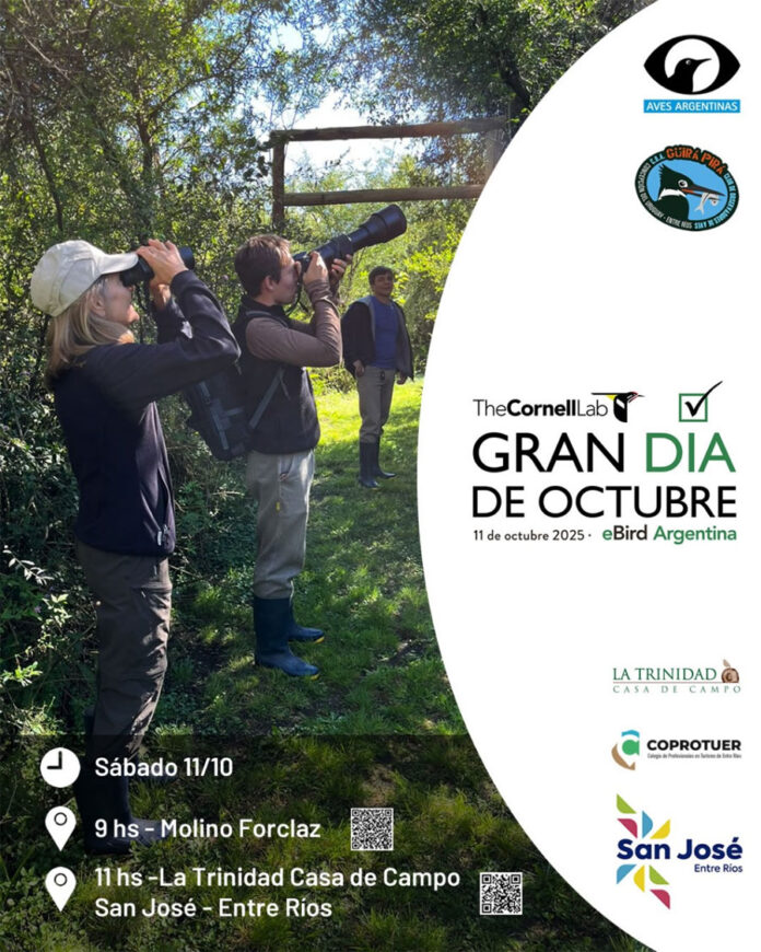 El sábado 11 de octubre se realiza a nivel mundial el Global Big Day convocado por la plataforma eBird. Observadores de aves de todo el mundo salen a observar aves y registrarlas en la aplicación, esta información es de mucha utilidad científica ya que permite determinar poblaciones de cada especie y evaluar el estado de cada una.