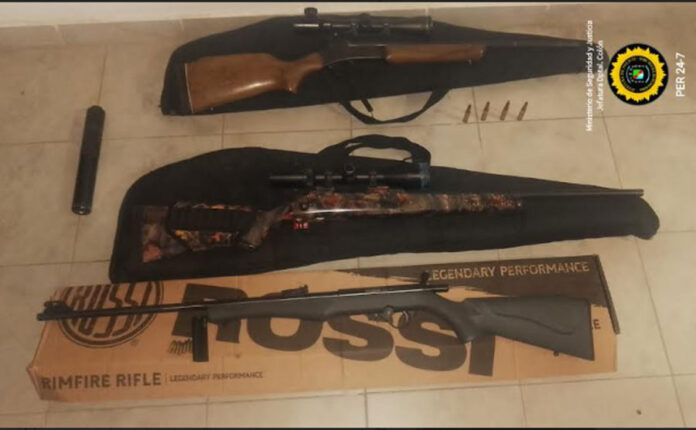 Ambas intervenciones arrojaron resultados favorables para la investigación, procediéndose al secuestro de un rifle cal. 22 marca Rossi, con dos almacenes cargadores; dos fusiles cal. .308, uno marca a Rossi, y el otro marca Maverick,  ambos con mira telescópica; un silenciador y cartuchería de diferente calibres.