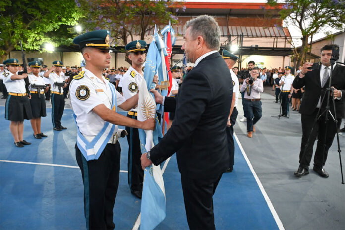 El ministro Roncaglia destacó la importancia de la finalización del ciclo lectivo: «Presenciar este momento, el traspaso de la Bandera y ver a nuestros cadetes me emociona mucho. Es importante acompañar este tipo de eventos porque quienes egresan cumplen una función muy importante en la seguridad pública. Ellos están cumpliendo un sueño de ser policías y nosotros estamos orgullosos de su formación», sostuvo.