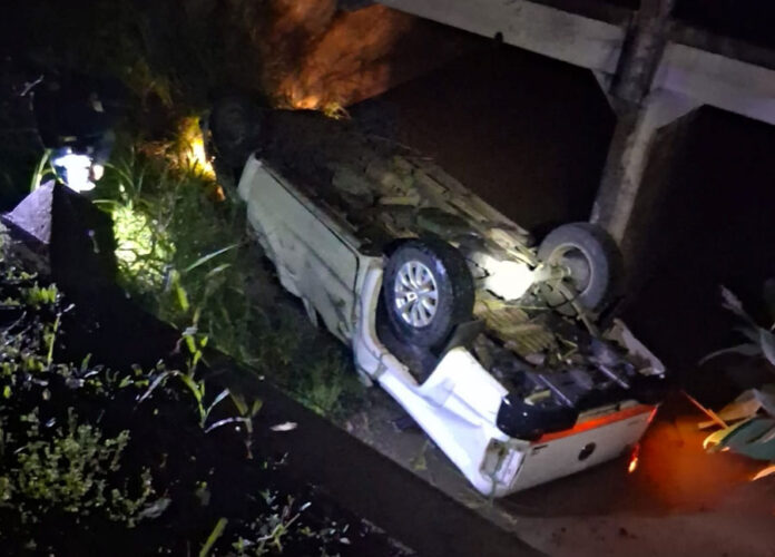 Al llegar al lugar, el personal policial constató la presencia de una camioneta Volkswagen Amarok volcada e invertida sobre un curso de agua, debajo de un puente. Dos hombres que se encontraban en la zona auxiliaron al conductor, un joven de 27 años, quien presentaba dificultades respiratorias a raíz del siniestro.