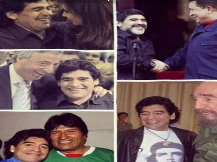 De todas tus imágenes elijo: los goles a los ingleses, tu tobillo izquierdo y tu ira justiciera en el mundial 90, el micrófono en tu mano que amplificaba el «alca, alca al carajo», tu vocación irrevocable de colocarte siempre junto a los desposeídos y avasallados; La forma inequívoca de denunciar atropellos, atropelladores, poderosos explotadores y usureros de ilusiones. Tu apasionada forma de amar la argentinidad. El saber siempre que el amor no tiene límites ni protocolos. Si hubieras sido prolijo, obediente, si solo hubieras hablado de técnicas de futbol o descripto jugadas, respondiendo a lo que el poder instituido reclama, exigiendo una asepsia hipócrita; si hubieras omitido las denuncias a los poderosos, a los mezquinos a los que lucran con la sangre y el dolor ajeno , si hubieras prescindido de tu desparpajo al voltear caretas, si hubieras resultado cómodo, hubieran disimulado los humanos errores no serias bandera en todos los lugares del mundo sonde se reclama justicia y equidad, pero seguro no tendrías el amor más incondicional de todos: el del Pueblo, ese número incontable de corazones que se juntaron para ser felices con vos y cuando te fuiste, para llorar tu viaje; porque solos no podemos, ni con tanta alegría ni con semejante dolor. Además, nuestro amor es colectivo y es el abrazo de miles, que forman uno.
