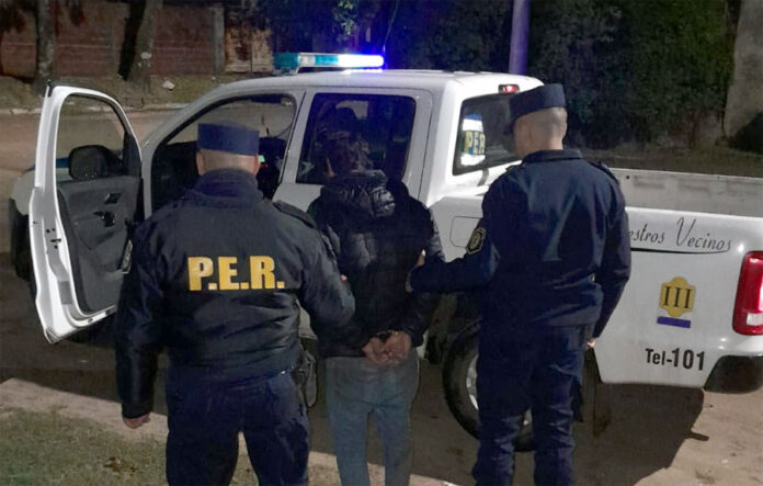 El joven, quien según los familiares presenta problemas de adicciones, intentó huir al ser notificado de las medidas, pero fue reducido a pocos metros y aprehendido por infracción al artículo 43° de la Ley 3815 (alteración del orden).