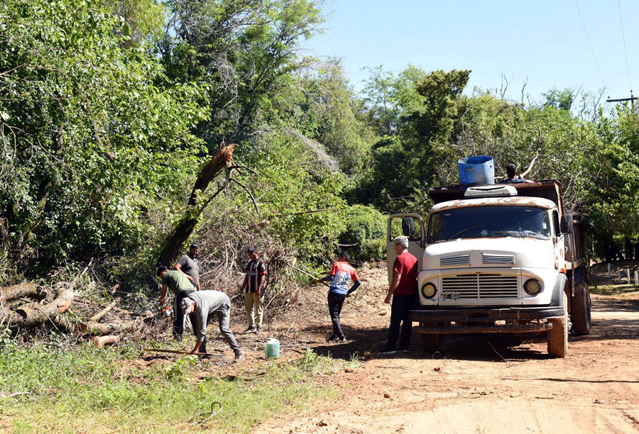 Las primeras tareas se desarrollaron en lo que tiene que ver con el despeje de caminos, retiro de árboles y ramas caídas, lo que significó un incesante ir y venir de camiones cargados con ramas. Luego se inició el desmalezado y corte de césped para recuperación de dos de los principales balnearios de la ciudad. A la par se fue trabajando en los caminos de acceso, principalmente a Paso Vera, y la constatación de las líneas eléctricas y todo el tendido de postes y cableado.