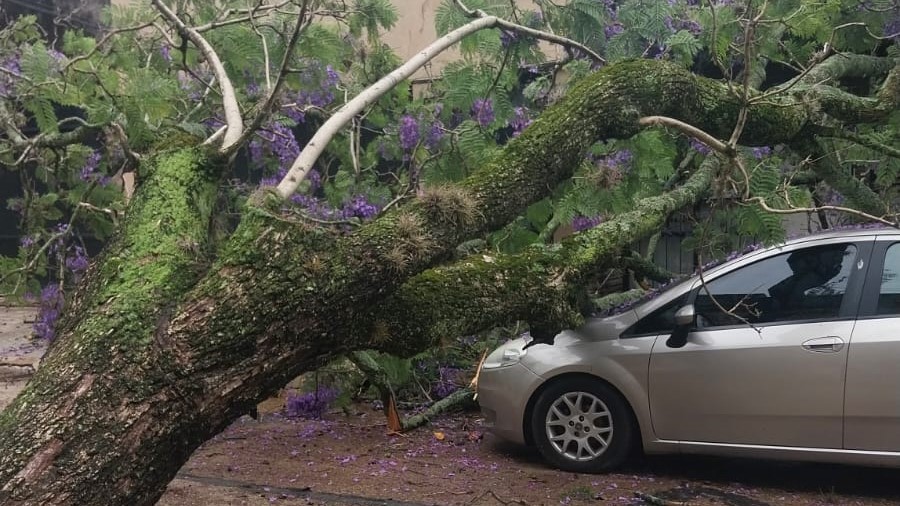 Finalmente esta madrugada el ejemplar levantó las veredas y se desprendió de sus raíces para dar de lleno sobre el vehículo Fíat estacionado frente al domicilio de su propietaria.