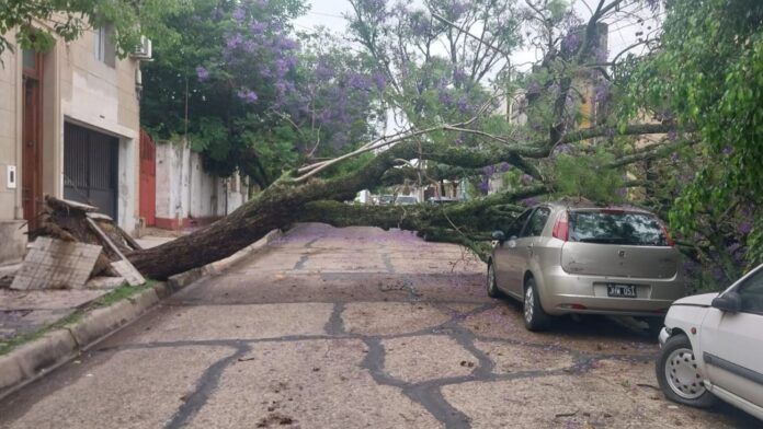 Sobre la calle 8 de Junio y su intersección con Seguí, un árbol muy grande y añoso cayó sobre un vehículo causándoles importantes destrozos.