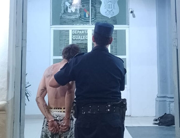 Al percatarse de la presencia policial, el individuo adoptó una actitud violenta y desafiante, por lo que debió ser reducido. Informada la Fiscalía en turno, se dispuso su inmediata detención y traslado a Jefatura Departamental, donde quedó alojado a disposición de la Justicia.