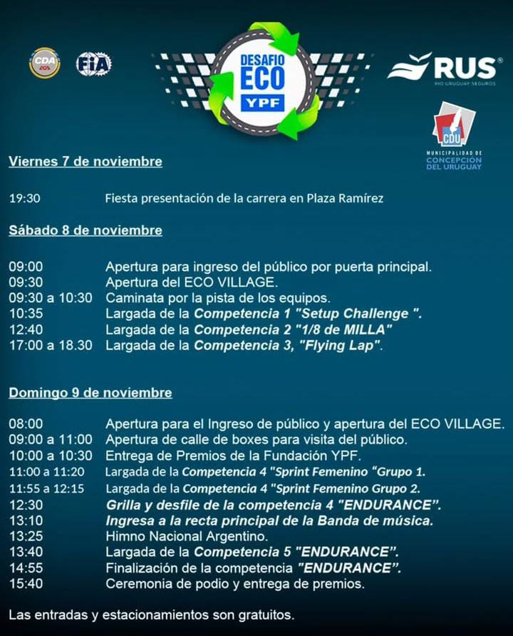 Al igual que en el 2024, el Desafío Eco YPF Gran Premio Rus 2025, se llevará a cabo en el autódromo de Concepción del Uruguay, durante los días 7, 8 y 9 de noviembre, y para esta ocasión tendrá 133 Participantes (se adjuntan, el listado y el cronograma de la competencia).
