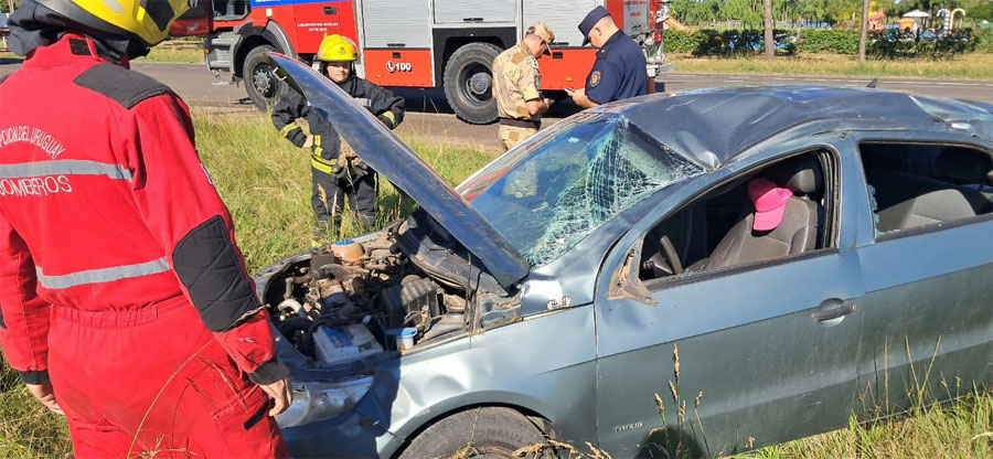 Un siniestro vial se registró esta tarde sobre la Ruta Nacional N°14, a la altura del kilómetro 129, frente al complejo Termas Concepción, donde un automóvil volcó mientras se dirigía desde Buenos Aires hacia Colón.