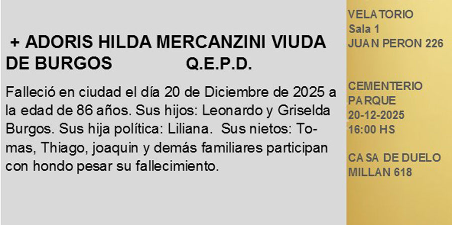 ADORIS HILDA MERCANZINI Vda de BURGOS QEPD
