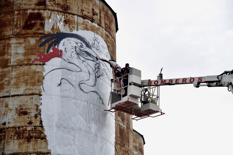 Desde el sábado y hasta el lunes, doce artistas de distintos puntos del país van dando forma a nuevas obras que transforman el paisaje. Cada trazo suma identidad, cada pared recuperada se vuelve un mensaje. Entre los momentos más esperados del encuentro se destaca el mural en altura que toma forma sobre los silos, a cargo de la reconocida artista uruguaya Verónica Gazzarata, Min8, quien vuelve a dejar su sello monumental en la ciudad tras el impacto que generó su obra del año pasado sobre calle Galarza.