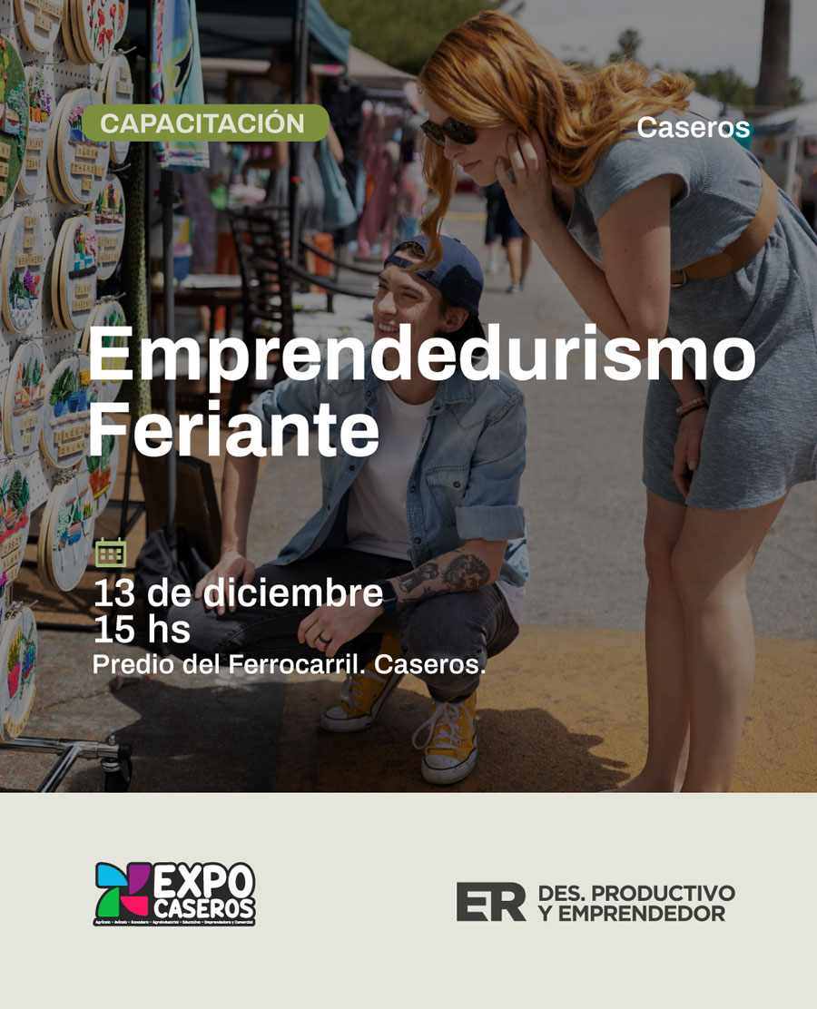 En el marco de la Expo Caseros 2025, el sábado 13 de diciembre a las 15:00 horas se desarrollará la Capacitación “Emprendedurismo Feriante” con la coordinación de la Dirección de Desarrollo Emprendedor de la Provincia.