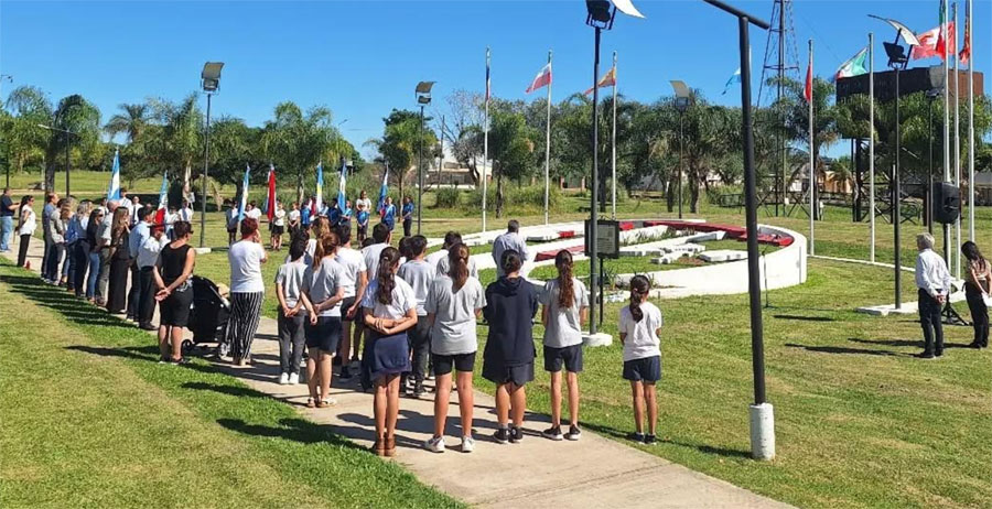 Con la presencia de autoridades municipales, referentes de instituciones, banderas de ceremonia de las escuelas locales, se realizó el izamiento de las nuevas banderas de Argentina, Entre Ríos, Caseros, y las de Italia, Francia, Suiza, Bélgica, España y Polonia, países de donde vinieron los primeros inmigrantes.