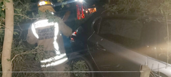 Tras perder el control, el automóvil terminó despistando hacia la zona del préstamo, frenando su marcha entre una arboleda lateral.