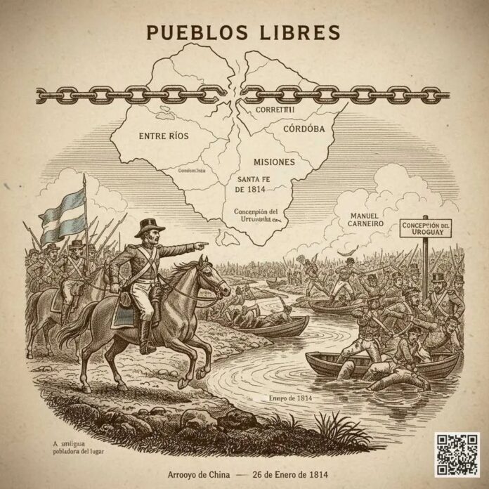Un día como hoy, el 26 de enero de 1814, las tierras entrerrianas fueron testigos de un hecho que cambiaría el destino del país para siempre. En el Arroyo de la China (actual Concepción del Uruguay), se encendió la mecha de la guerra civil argentina con un enfrentamiento que puso a prueba el sueño federal de José Gervasio Artigas. La tensión había llegado a su punto de quiebre luego de que Buenos Aires rechazara a los diputados artiguistas en la Asamblea del Año XIII. Ante este desprecio, el «Protector de los Pueblos Libres» rompió lazos con el centralismo porteño, consolidando su liderazgo sobre Entre Ríos, Corrientes, Misiones, Santa Fe y Córdoba. Buenos Aires no tardó en enviar expediciones militares para castigar a las provincias rebeldes que seguían la huella de Artigas.