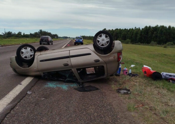 Por causas que la Policía de Entre Ríos intenta establecer, un automóvil Renault Clio que circulaba en sentido sur-norte sufrió un despiste seguido de vuelco. El vehículo era conducido por un hombre de 61 años, quien viajaba acompañado por una mujer y otro hombre, ambos de 56 años, todos oriundos de la provincia de Buenos Aires.