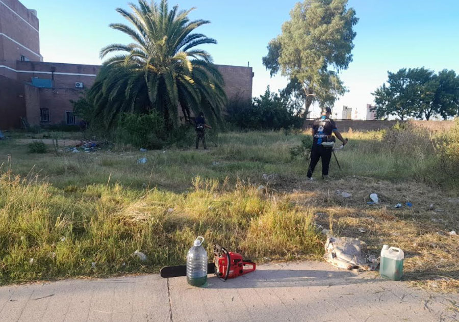 El primer operativo se desarrolló en el predio del Hospital Justo José de Urquiza, a partir de un pedido realizado por su director, el Dr. Pablo Lombardi. En la zona se registraba una importante presencia de malezas, lo que generaba situaciones de inseguridad tanto para quienes residen en el lugar como para las personas que concurren al nosocomio.