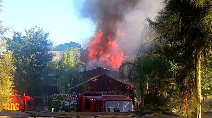 Toda la estructura del techo de paja y la tirantería de madera recubierto de chapas de zinc tomó fuego en cuestión de instantes y, pese a la rápida respuesta de los bomberos, fue imposible controlar el incendio hasta que consumió completamente el techo, por lo que las pérdidas son totales.