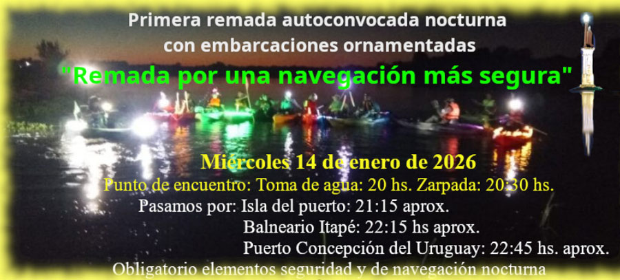 Por lo pronto, los pronósticos son propicios para la actividad, así que de mediar buen clima y buen río el próximo miércoles 14 de llevará a cabo una remada autoconvocada nocturna alrededor de la Isla del Puerto, en una actividad de carácter simbólico, preventivo y educativo.