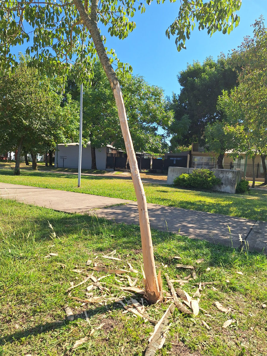 Este jueves por la noche, se registraron actos de vandalismo en la Plaza Güemes de nuestra ciudad. Los daños fueron realizados sobre los árboles ubicados sobre calle Centenario.