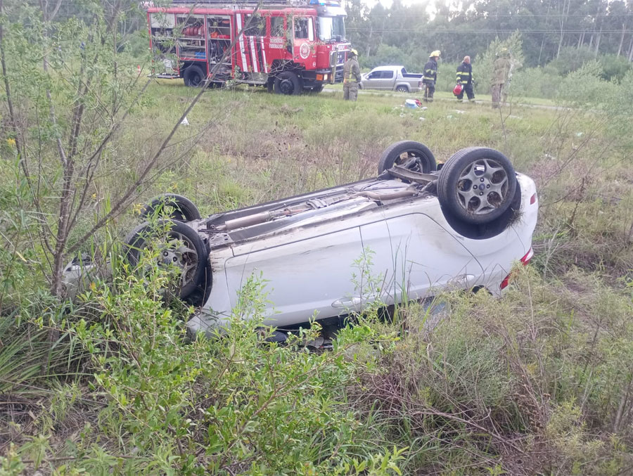 Por causas que aún son materia de investigación, un automóvil que circulaba en sentido Norte-Sur perdió el control, despistó y terminó volcando sobre la banquina. El vehículo quedó en posición invertida, con sus cuatro ruedas hacia arriba, lo que generó un rápido despliegue de los servicios de emergencia.