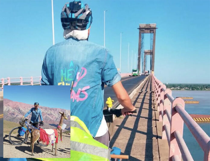 Daniel Canela, hijo de Mirta Cáseres y Horacio Canela, es oriundo de Basavilbaso y hace casi un mes decidió convertir en realidad un anhelo que venía madurando desde hacía tiempo: recorrer la Argentina en bicicleta.