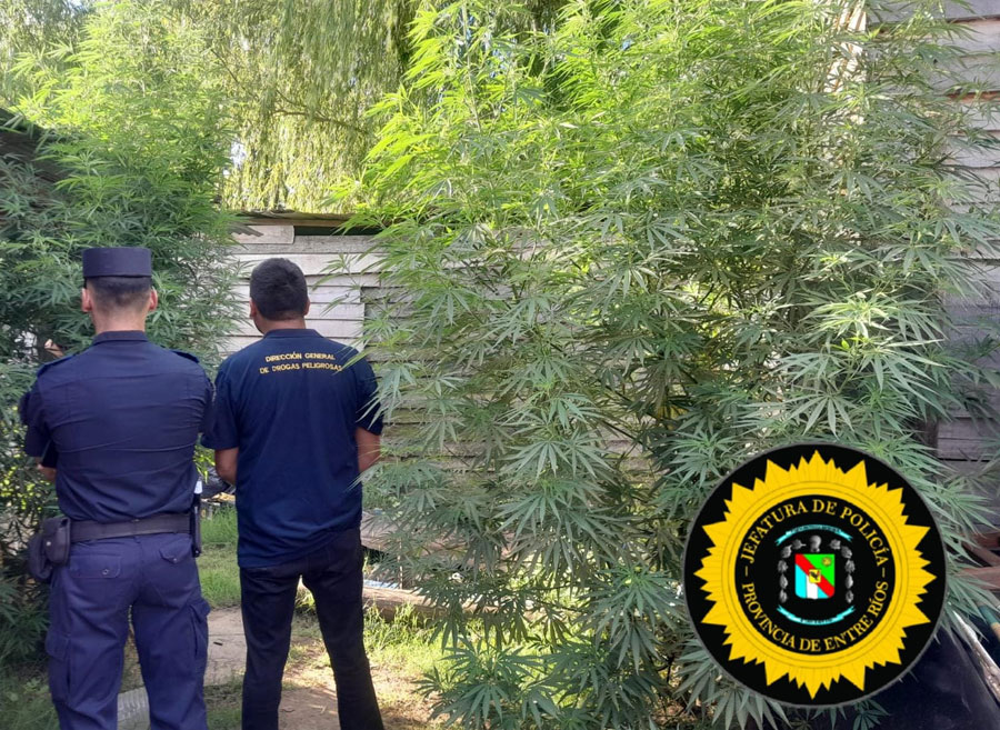 Un procedimiento por daños y violencia terminó con el secuestro de plantas de cannabis de más de tres metros de altura. El pesaje total de la sustancia superó los 5,5 kilogramos.
