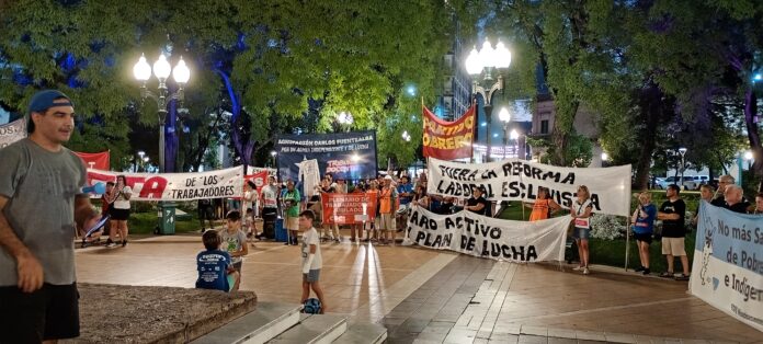 Cómo es habitual, la concentración fue al pie de la Pirámide de Plaza Ramírez, donde se escucharon discursos de las distintas agrupaciones y gremios, para luego marchar en torno a la plaza.