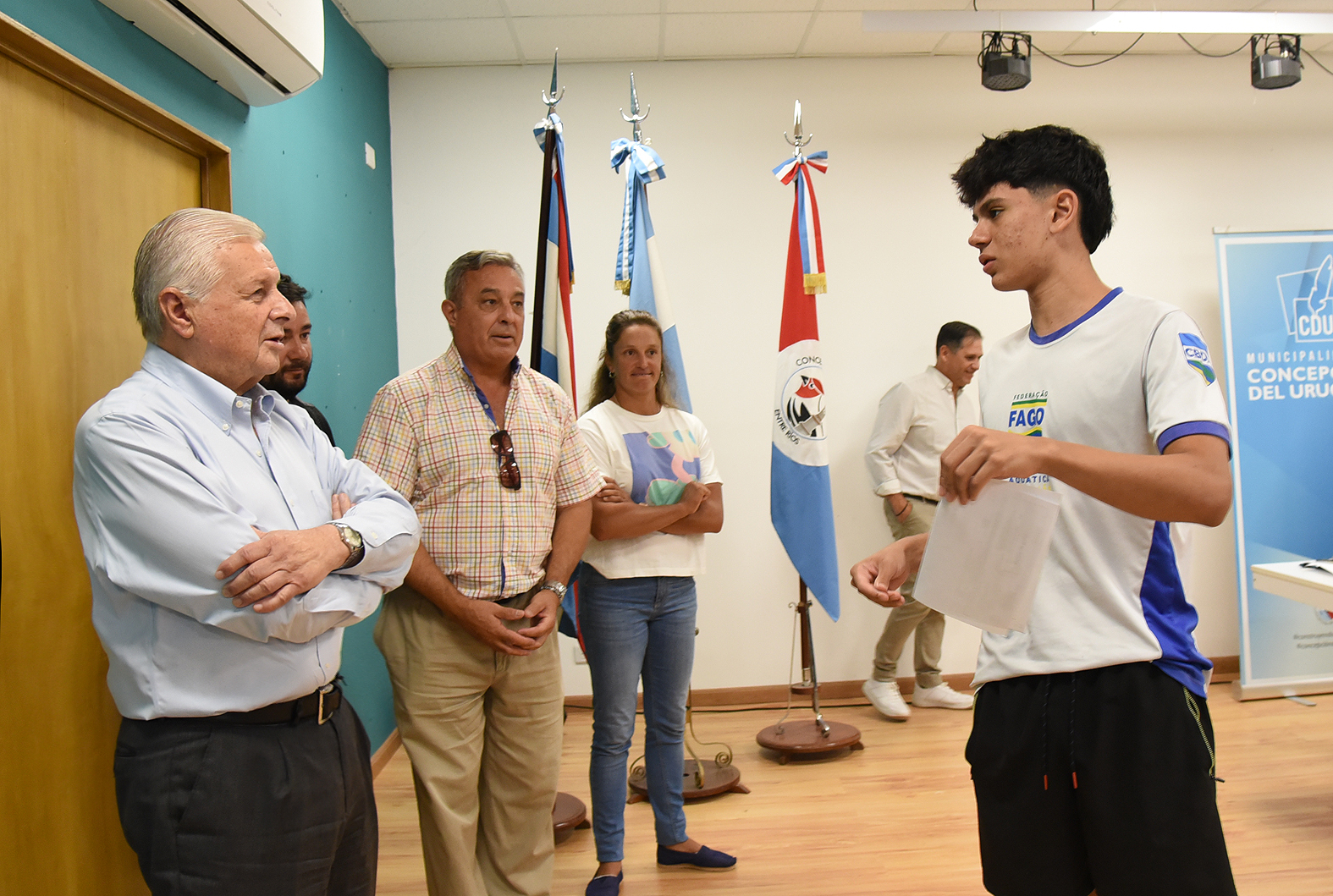 Acompañaron al intendente Lauritto en la reunión, la atleta olímpica uruguayense y coordinadora del Programa de Becas, Magdalena Garro; el jefe de Gabinete Ezequiel Valdunciel; el secretario de Turismo, Cultura y Deportes, Sergio Richard, y el director de Deportes, Osvaldo López, entre otras autoridades.