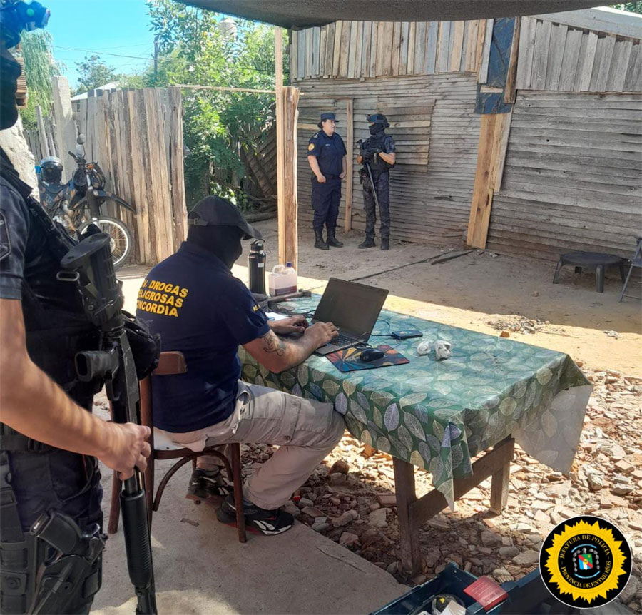 La medida fue solicitada por el fiscal Dr. Fabio Zabaleta y autorizada por el Juzgado de Garantías N° 4, a cargo de la Dra. María Gabriela Zeró. En el lugar trabajó el personal de la División de Drogas Peligrosas con el apoyo del Grupo Especial de la Jefatura Departamental Concordia.