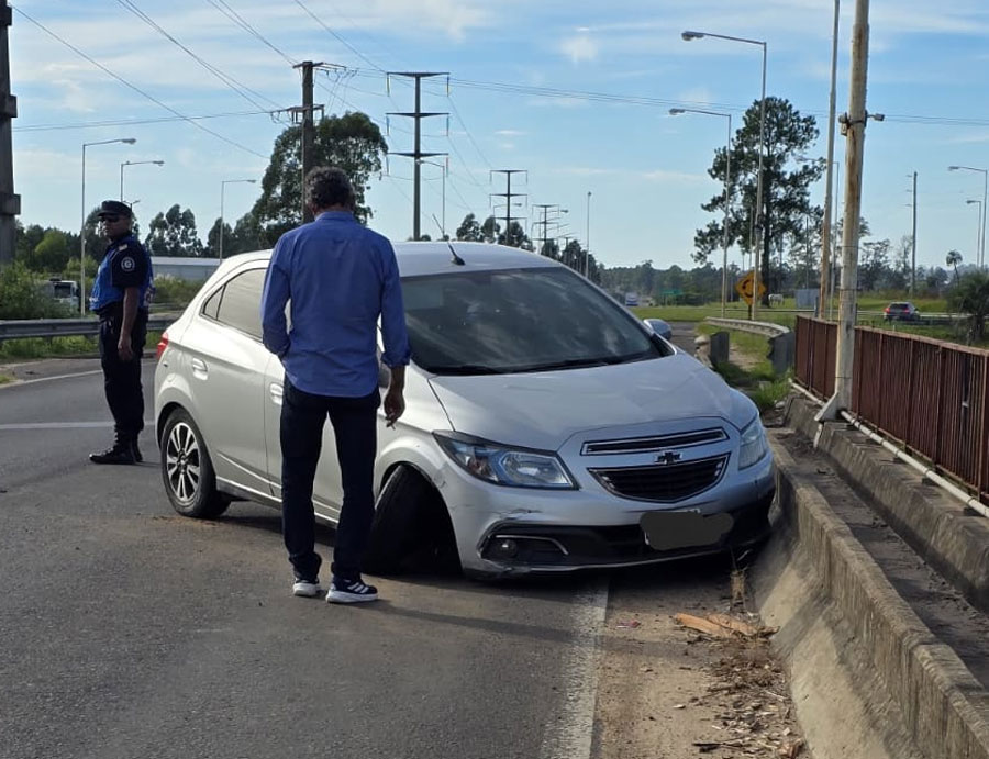Según sus dichos, al transitar por el puente del cruce con la Autovía Gervasio Artigas, se habría quedado dormido, perdiendo el control del rodado e impactando con la rueda delantera derecha (lado acompañante) contra el borde de hormigón, lo que provocó la rotura del neumático.