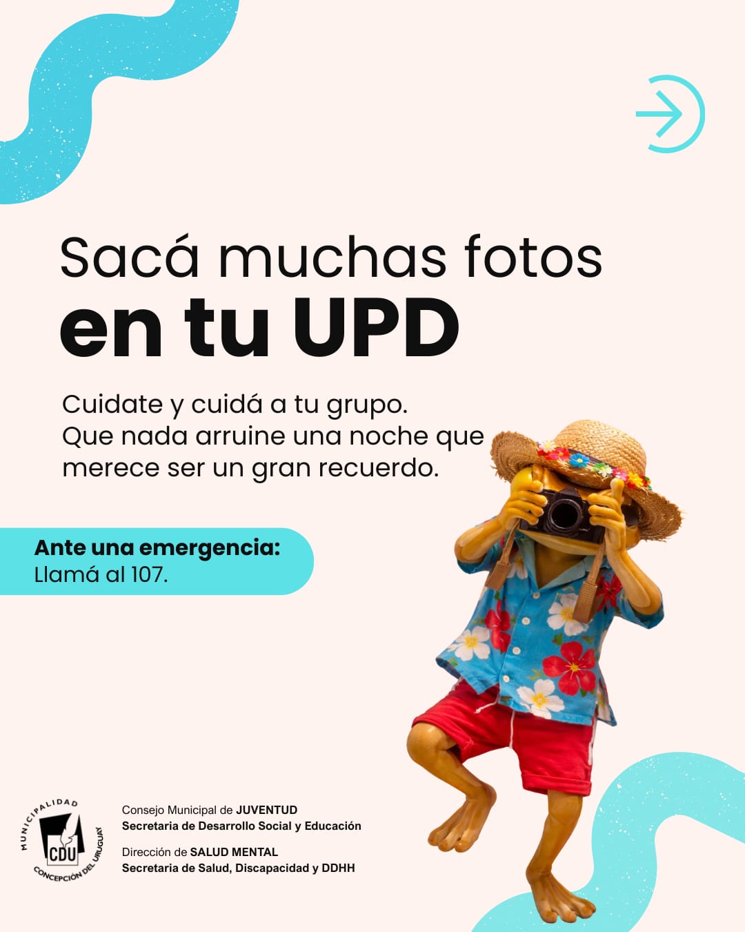 En el marco del Último Primer Día (UPD), desde el Consejo de la Juventud, y la Dirección de Salud Mental de la Municipalidad de Concepción del Uruguay, se estarán difundiendo a través de redes sociales una serie de placas informativas con recomendaciones de prevención y cuidado, orientadas a acompañar a nuestros/as jóvenes en esta fecha tan significativa. El canal y el formato permitirá que la información sea masiva, de fácil acceso y presentada en un lenguaje claro y sencillo para toda la comunidad, pero especialmente para las y los jóvenes.