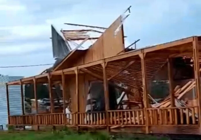 Según las primeras informaciones, las intensas ráfagas de viento y las fuertes lluvias ocasionaron la caída de numerosos árboles, voladura de techos y la destrucción total de una vivienda–comercio de madera ubicada dentro del sector afectado.