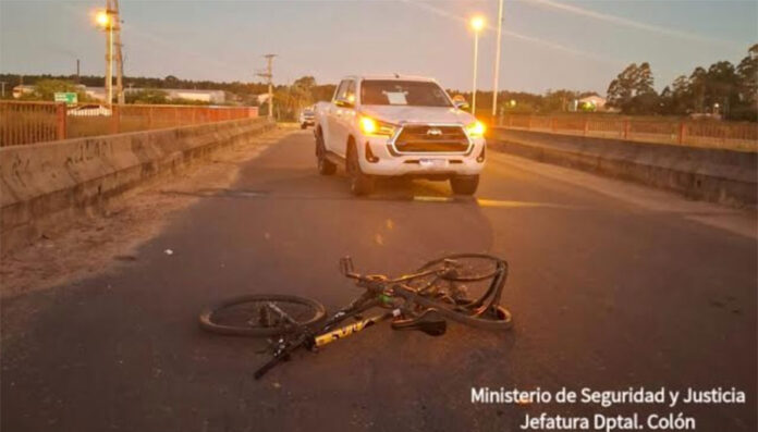 Por causas que las pericias accidentológicas intentan establecer, una camioneta Toyota Hilux, conducida por un joven de 22 años, colisionó contra una bicicleta que transitaba en su misma dirección.
