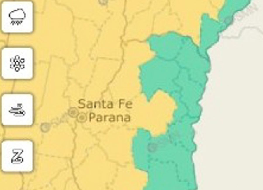 Desde el área de Defensa Civil de la provincia informaron que el Servicio Meteorológico Nacional emitió un alerta amarilla para los departamentos La Paz, Villaguay, Paraná, Diamante, Nogoyá, Victoria y Gualeguay.