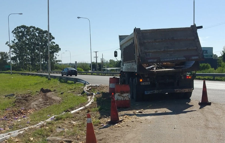 Tareas de reparación en estructura de puente afectada por siniestro reciente.