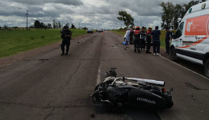 El choque frontal-lateral se produjo entre una motocicleta Honda Titán CG 150, conducida por un oficial de policía de 21 años, oriundo de San Benito (Paraná), quien cumple funciones en la Comisaría Sexta de Gualeguaychú y un Fiat Uno color blanco, manejado por una mujer de 60 años, con domicilio en la ciudad de Colón.