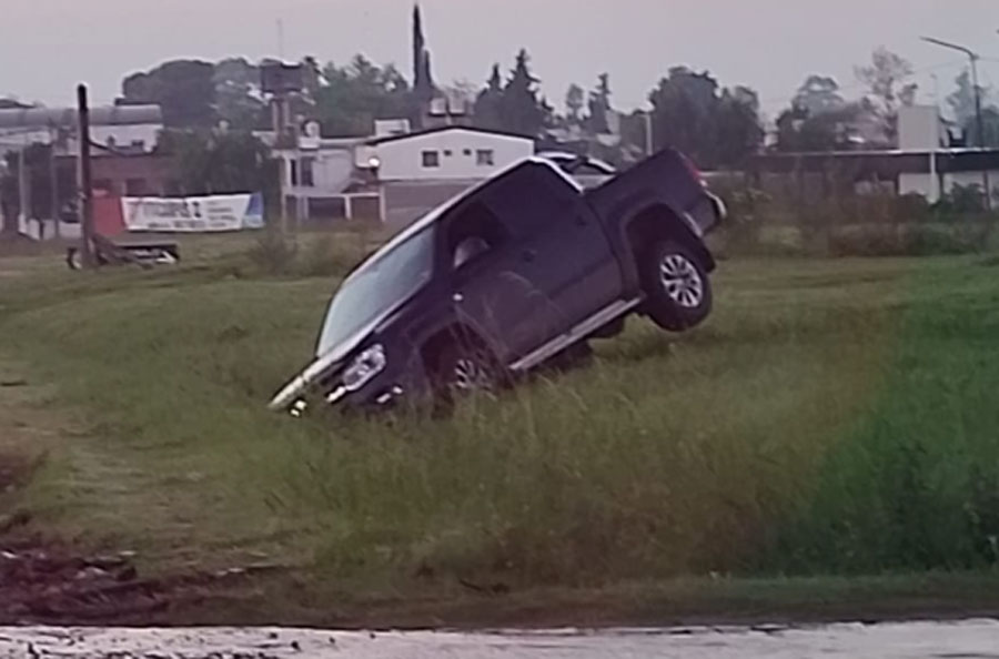 Despiste y misterio en el Acceso Uncal: una camioneta Amarok terminó dentro del zanjón