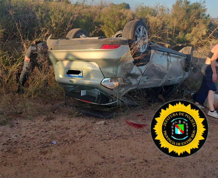 En el vehículo viajaban cuatro personas (dos hombres y dos mujeres), todos de Gualeguaychú. Debieron ser asistidos por Bomberos Voluntarios y trasladados al hospital local, aunque afortunadamente solo presentaron lesiones leves. Por su parte, el funcionario policial sufrió escoriaciones y hematomas en su pierna derecha.