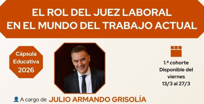 Desde el viernes 13 a las 19, hasta el 27 de marzo a las 23:59, estará disponible la primera cohorte de la cápsula educativa “El rol del juez laboral en el mundo del trabajo actual”. Se trata de una capacitación virtual, asincrónica, no arancelada y con certificación , que estará a cargo del juez nacional del trabajo, Julio Armando Grisolía.